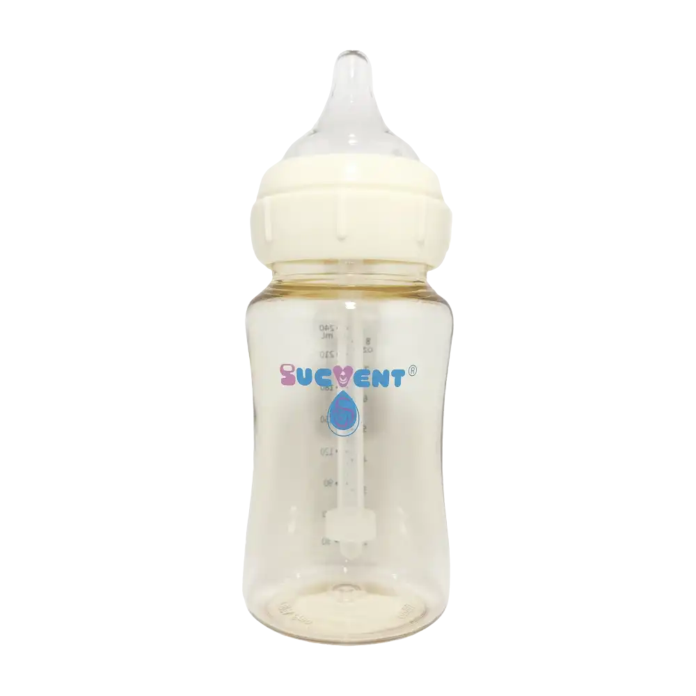 Sucvent PPSU (Polyphenylsulfone) baby bottles combine durability with a joyful feeding experience. Made from high – quality PPSU sourced from Germany. They are safe, lightweight, easy to sterilize, and resistant to stains and odours. Available in 150 ml and 240 ml sizes, each bottle comes with a wide-neck slow flow silicone teat, designed for a natural latch and smooth milk flow for babies up to 3 months old.